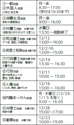 ■市役所休日開庁日 12/7(日) 8:30~17:00