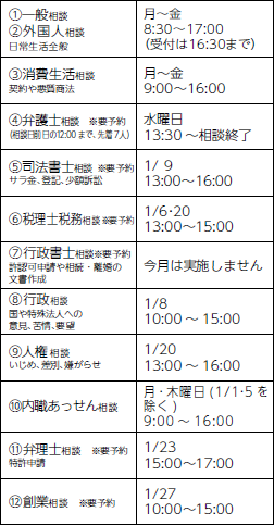 場所:市役所 1階市民生活課くらしの相談係