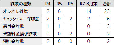 さらに、令和7年は8月までに過去3年間を上回る14件のオレオレ詐欺が発生しており、1億円以上の被害が出ています。