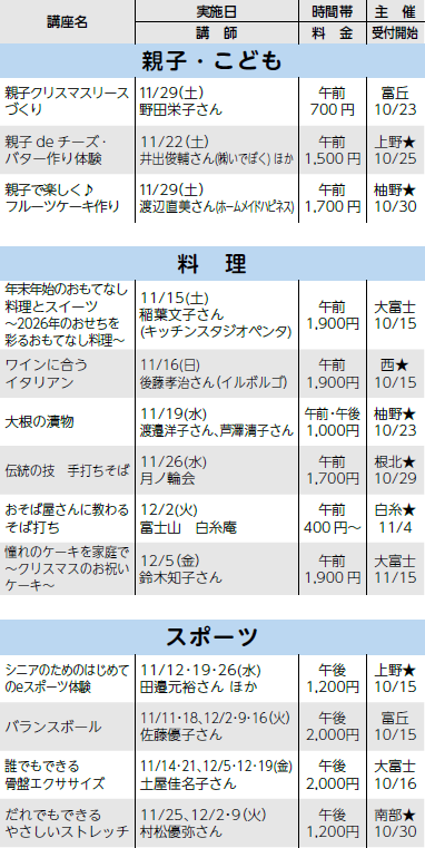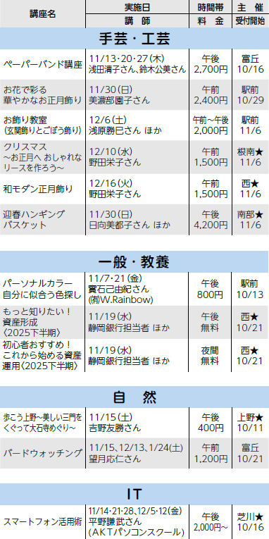 ・★の講座は受付開始日のみ電子申請(24時間受付)ができます。