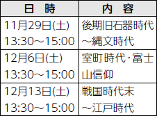 市の学芸員が、それぞれの時代について解説します。