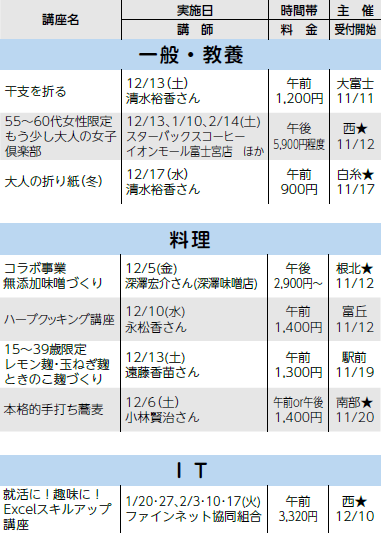 ・★の講座は受付開始日のみ電子申請(24時間受付)ができます。