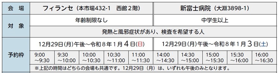 年末年始の新型コロナウイルス感染症とインフルエンザの流行への対策として、市内2か所に完全予約制の臨時発熱センターを開設します。