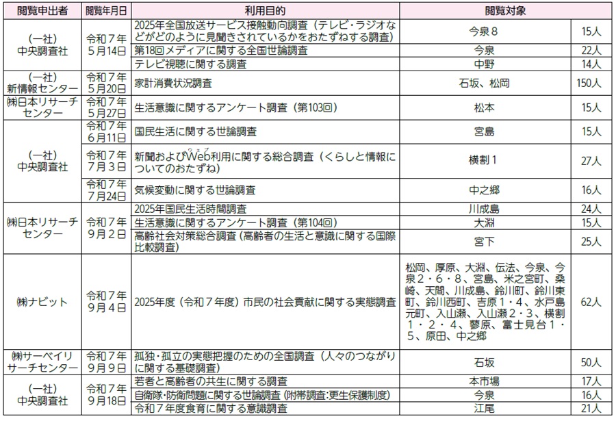 ■令和7年度前期(4月1日~9月30日)住民基本台帳の一部の写しの閲覧状況