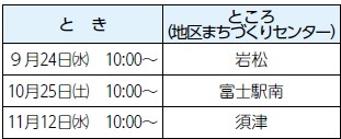 申込み:9月15日(月・祝)から各開催日3日前までに、市ウェブサイトで電子申請するか、電話で富士友の会へ【電話】090-3384-9660