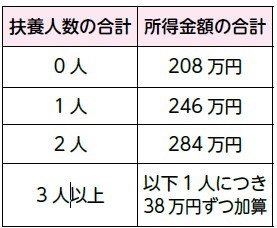 所得制限額は、受給資格者とその配偶者の扶養人数の合計により変わります。
