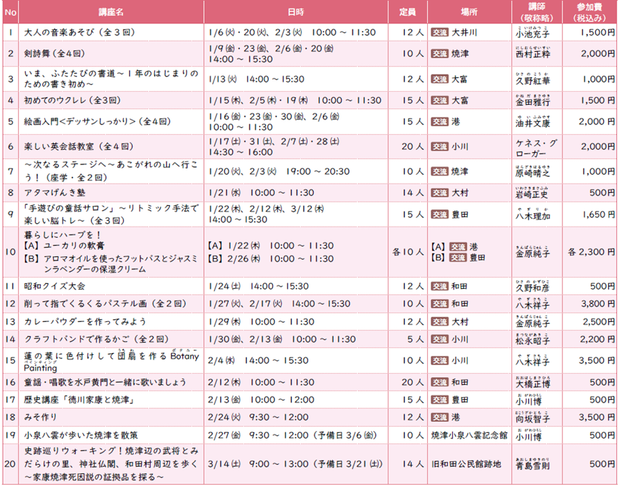 定員:各回20人(申し込み多数の場合は、焼津おとな倶楽部会員を優先して抽選)