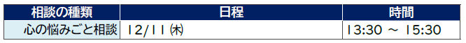 ■心の悩みごと相談談(総合福祉会館3階小会議室2)