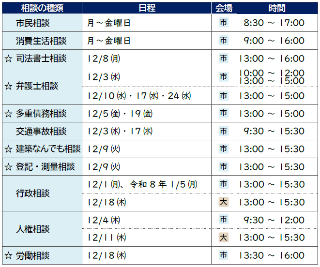 ※予約制でないものも、面接による相談を希望する場合は、事前に電話でご相談ください。