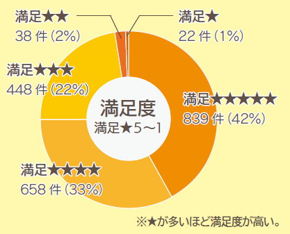 70%以上の皆さんが満足(★4・5)と回答しました。