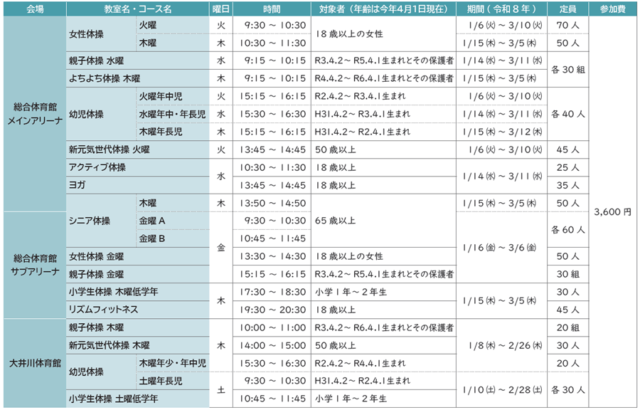 令和7年度第3期スポーツ教室の受講者を募集します。