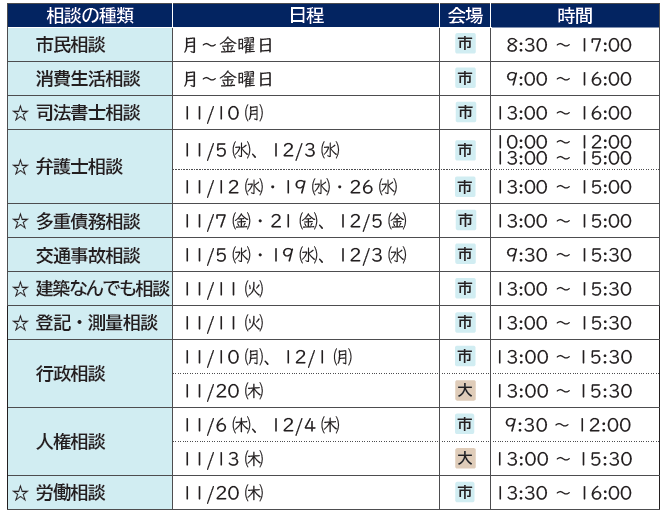 ※予約制でないものも、面接による相談を希望する場合は、事前に電話でご相談ください。