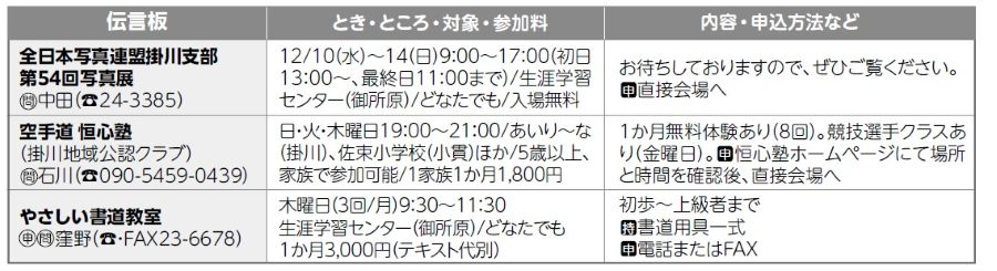 講座 伝言板 14/32 前の記事 次の記事 発行日 : 2025年12月01日 自治体名 : 静岡県掛川市 広報紙名 : 広報かけがわ 令和7年12月1日号 Tweet シェアする お知らせ・募集(1) お知らせ・募集(2)