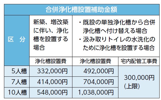 特に、トイレの排水しか処理できない「単独浄化槽」から、家庭から出る生活排水のほとんどを処理できる「合併浄化槽」へ付け替える方には、今年度から補助金額を増額しています。