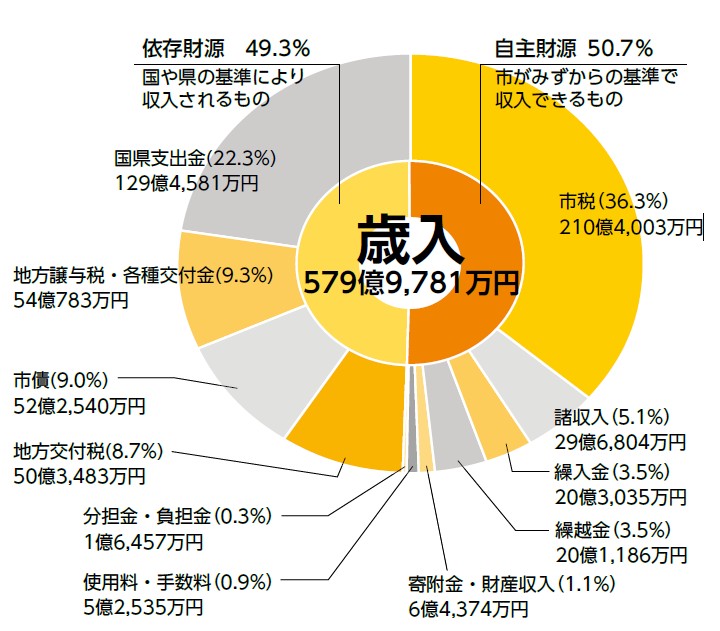 寄附金・財産収入:ふるさと納税や市有財産の貸し付け収入などです。