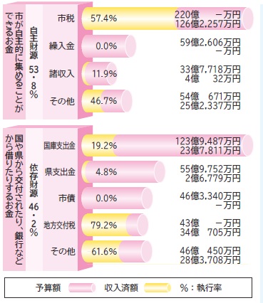 皆さんに市の財政状況を知っていただくために、令和7年度上半期(令和7年4月~9月)の収入・支出の状況をお知らせします。