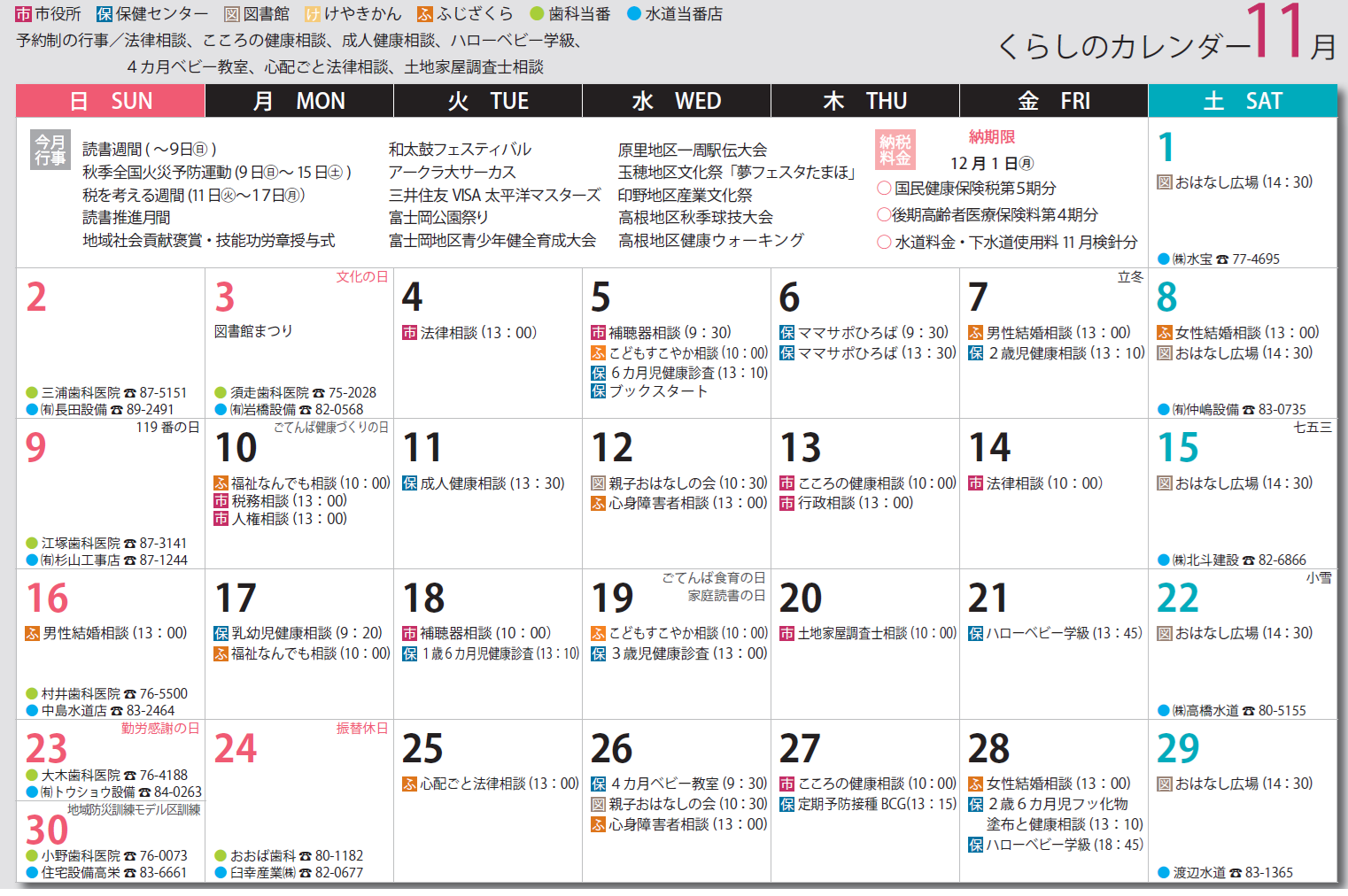 くらし くらしのカレンダー 11月 17/18 前の記事 次の記事 発行日 : 2025年10月20日 自治体名 : 静岡県御殿場市 広報紙名 : 広報ごてんば 令和7年10月20日号 ※行事などの日時は変更となる場合があります。 Tweet シェアする 図書館だより その他のお知らせ(広報ごてんば 令和7年10月20日号)