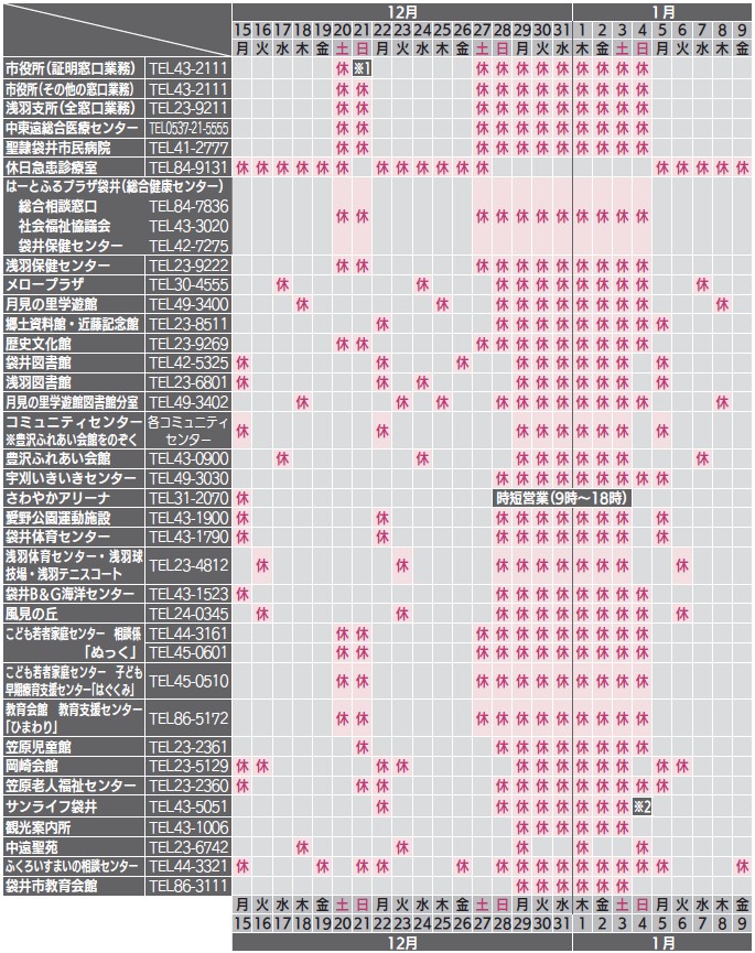 ※2:サンライフ袋井の令和8年1月4日(日)の開館時間は、午前9時~午後5時です。