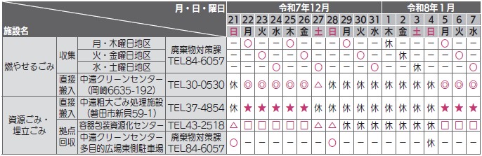 ・市役所・浅羽支所に設置してある古紙回収ボックス…12月28日(日)から令和8年1月4日(日)までは利用できません。