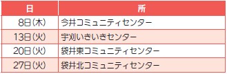 ◇支援センターの職員が、月4回、コミュニティセンターなどに出向き、子育て支援や育児相談などを行います。