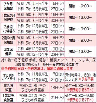 ※健診・相談・教室の予約は市ホームページをご確認ください。