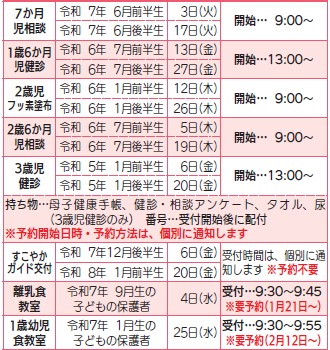 ※健診・相談・教室の予約は市ホームページをご確認ください。