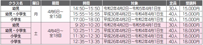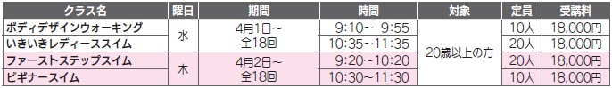 ・受講料には、いずれもプール使用料・保険料を含みます。