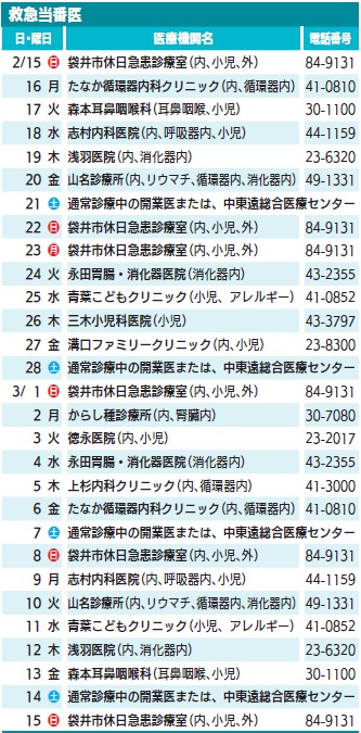 ■2月15日(日)~3月15日(日)救急診療