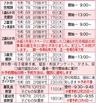 ※健診・相談・教室の予約は市ホームページをご確認ください。