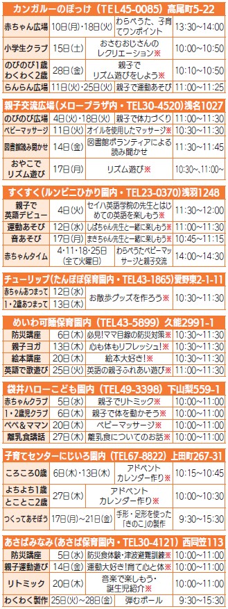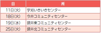 ◇支援センターの職員が、月4回、コミュニティセンターなどに出向き、子育て支援や育児相談などを行います。