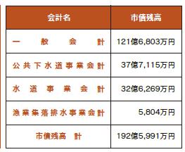 一般会計における市債借入額は、13億1570万円で、借入目的は、新庁舎建設事業、市道鵜島大浦線改修事業などで、前年度に比べて1億9950万円、13.2%の減となっています。