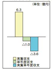 令和6年度は、歳入が約138億3,232万円、歳出が約132億0,252万円の決算となりました。繰越財源を除いた実質収支は約6億2,604万円となり、前年度の実質収支や財政調整基金の積立て・取崩しを加味した実質単年度収支では約3億5,634万円の赤字となりました。