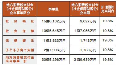 交付金平成26年4月1日と平成30年10月1日の計5%の消費税引き上げに伴う、地方消費税交付金の増額分については、社会保障施策(社会福祉・社会保障・保健衛生・子ども子育て支援)に要する経費の財源に充てることとなっています。
