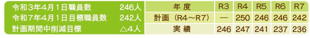 令和4年から令和7年までの4年間で4人の削減を目標とする第7次定員適正化計画を策定し、次のように定員適正化を進めています。