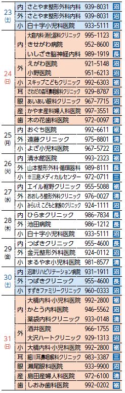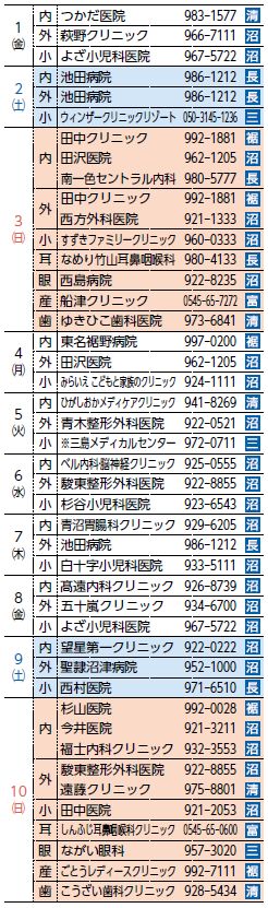 救急協力医は変更になる場合があります。事前に確認してください。