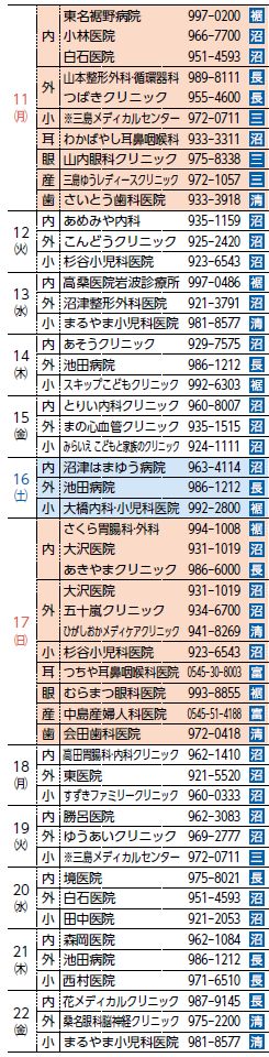 救急協力時間:5日(火)・19日(火)・26日(火)…18時~21時 / 11日(月)…9時~18時