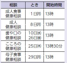 ※場所は、いずれも福祉保健会館、予約制です。電話で申し込んでください。