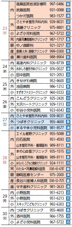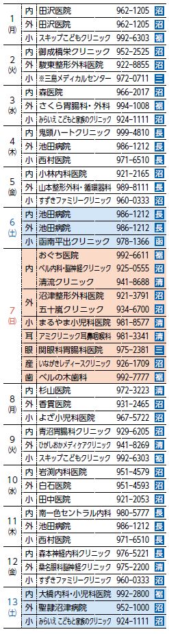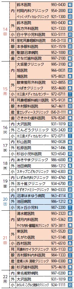 救急協力時間:2日(火)・16日(火)…18時~21時/15日(月)…9時~18時