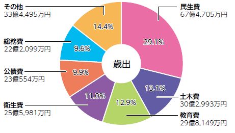 民生費:障がい者や高齢者の福祉サービス、保育園、子育て支援、生活保護費など
