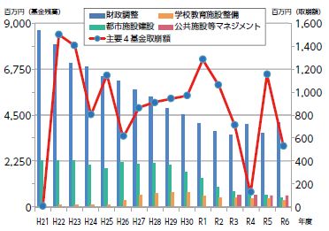 令和6年度は財源不足に対応するため財政調整基金を3億479万円取り崩しています。