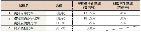 地方公共団体の財政の健全化に関する法律に基づき、令和6年度の健全化判断比率と資金不足比率を公表します。各指標の数値は早期健全化基準と財政再生基準を大きく下回り、健全な財政運営を行っています。