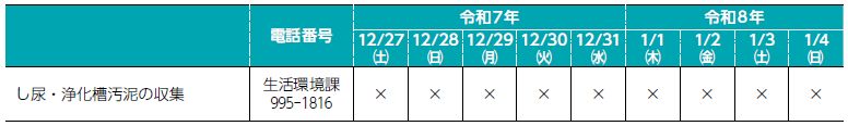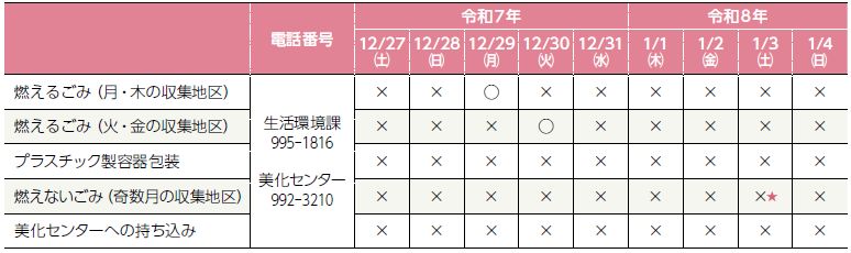 ※年末年始の休業前の収集は、12月12日(金)までに各清掃業者に依頼してください。