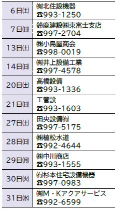 ■12月の水道工事当番店