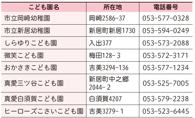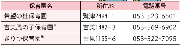 ※「吉美風の子保育園」と「きりつ保育園」は、0~2歳児を保育する小規模保育事業所です。