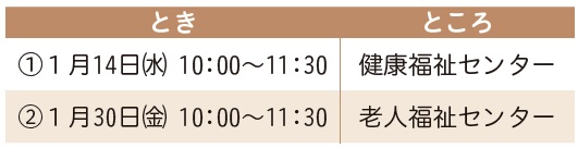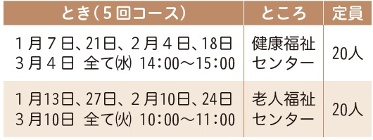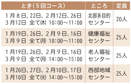 対象者:65歳以上で原則介護保険を利用しておらず、かつ教室初回に必ず参加できる人