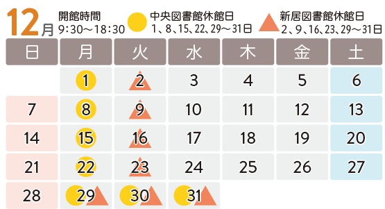 ・中央図書館は1月5日(月)まで