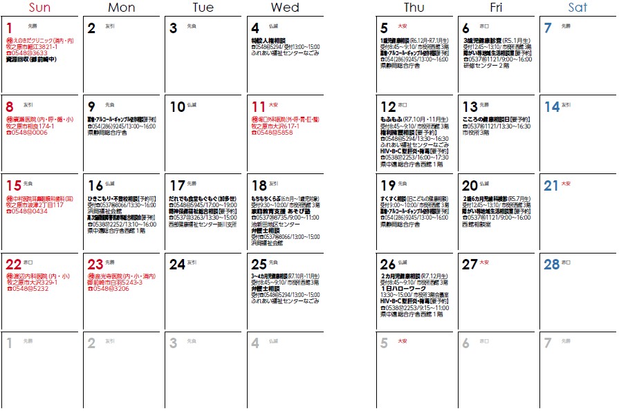 当番医はカレンダー内に記載