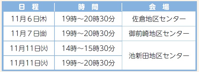 ・お住まいの地区に限らず、どの日程でも参加できます。