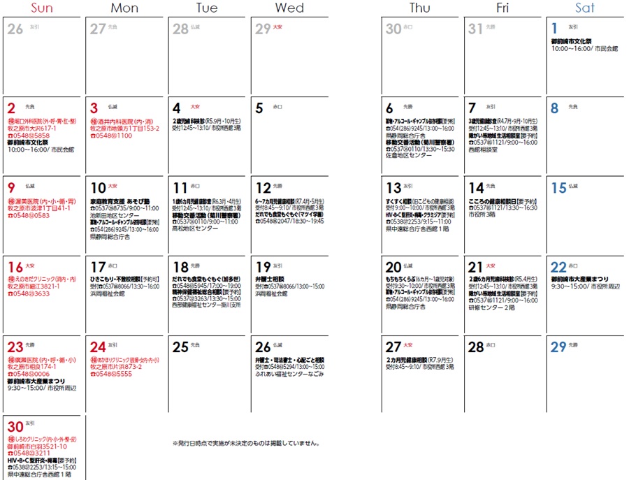 当番医はカレンダー内に記載