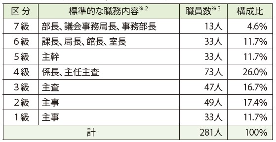 ※3 菊川市の給与条例に基づく給料表の級区分による職員数です。